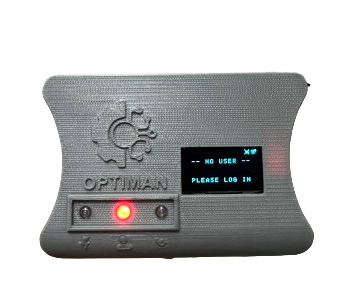 Optiman is an IoT device that enables wireless monitoring, tracking, control, and precise analytics for industrial operations. Operators input data into the system by scanning RFID cards.
